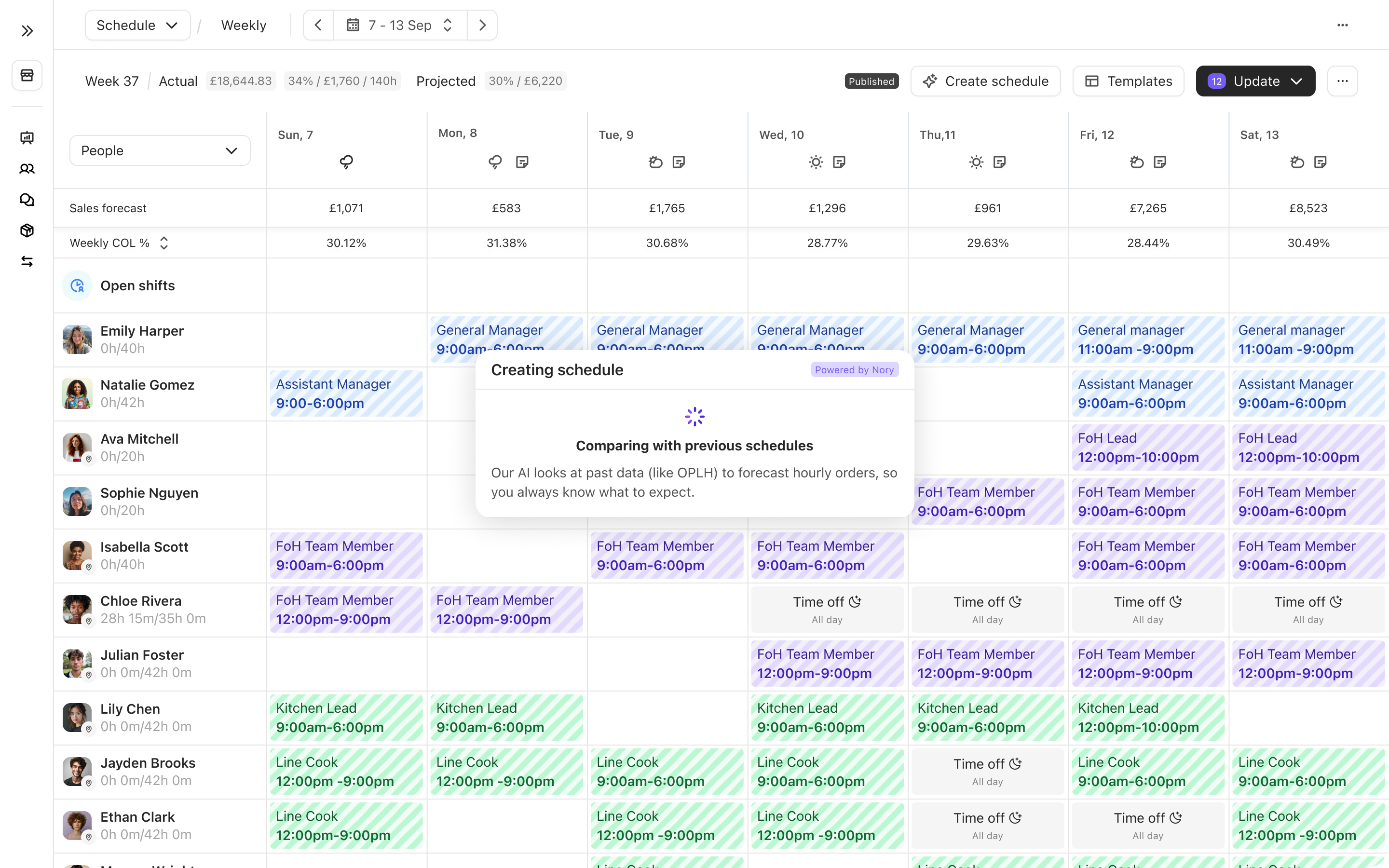 It takes time and effort to analyse previous sales to create schedules that balance employee skills and availability with customer demand. But the good news is that Nory can deliver these goods and create effective, optimised schedules for your restaurant!
