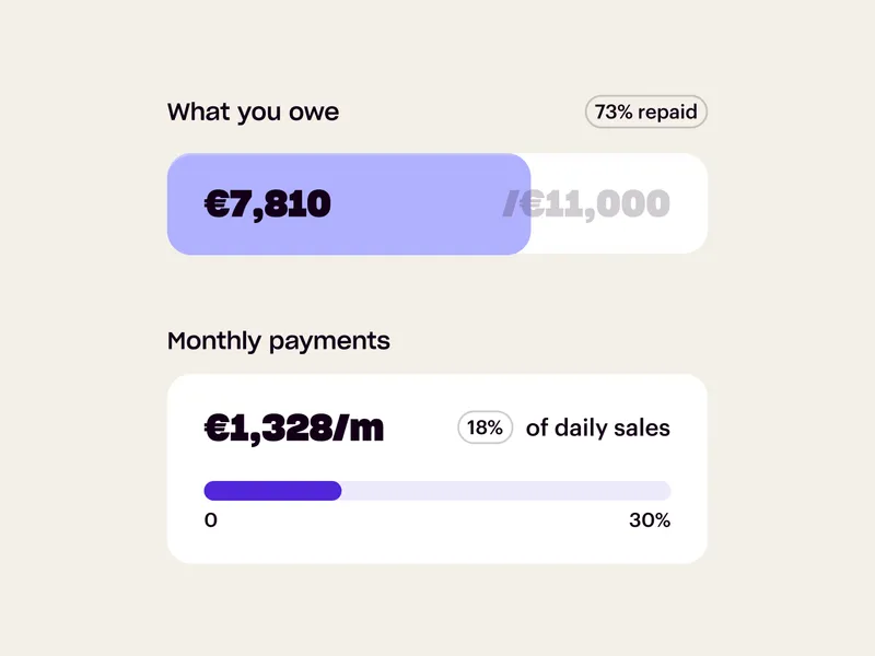 That’s up to you. You can decide how long your payment term is and how much you want to pay each month. Repayment is usually taken as a small percentage of your daily card sales, adjusted according to your cash flow without any extra fee or charge. On days without sales, you will not repay anything. However, you can always make a one-off payment, free of charge, if you would like to.